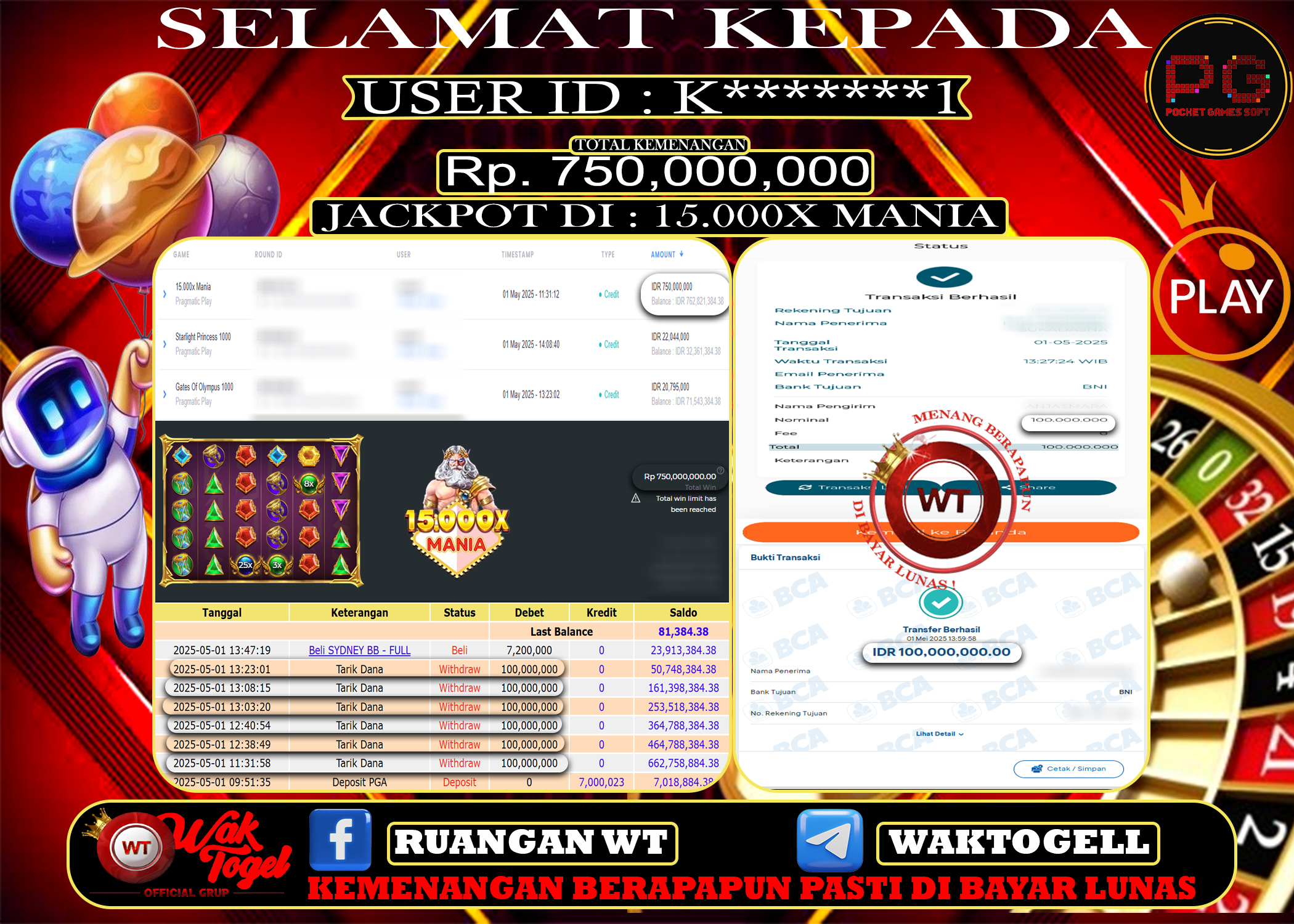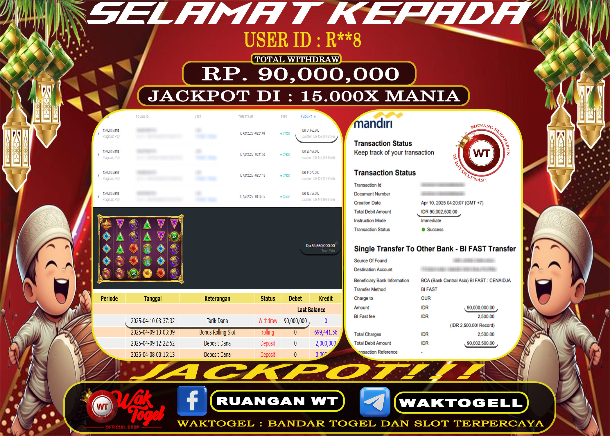 Bukti Pembayaran Jackpot Waktogel Untuk SLOT, TOGEL , LIVECASINO
