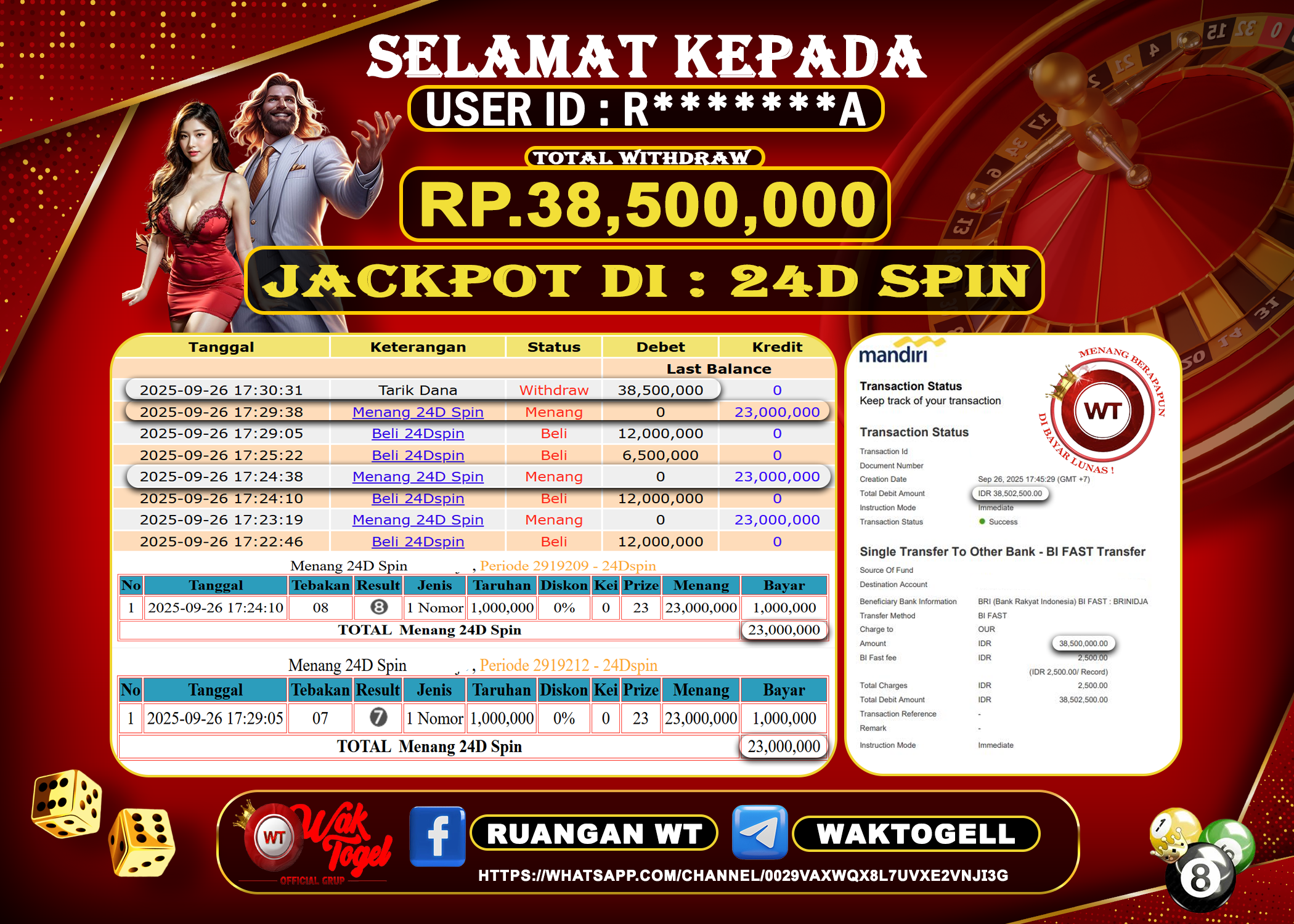 Bukti Pembayaran Jackpot Waktogel Untuk SLOT, TOGEL , LIVECASINO
