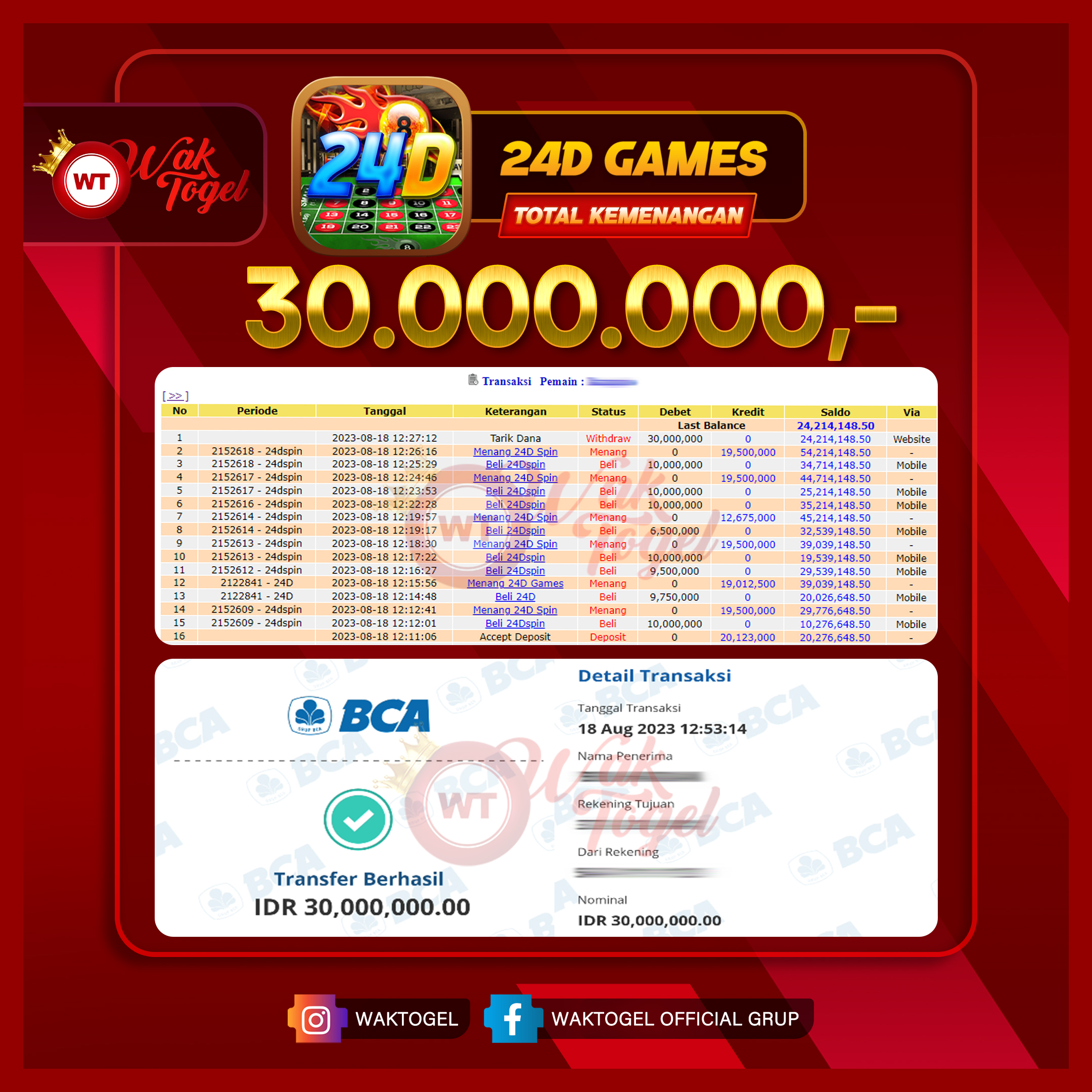 JACKPOT CASINO WAKTOGEL BUKTI PEMBAYARAN 24D WAKTOGEL By JPWT Agustus 19, 2023 0 comments 2 min read BUKTI PEMBAYARAN 24D WAKTOGEL BUKTI PEMBAYARAN 24D WAKTOGEL RP. 30.000.000 – GAME : CASINO 24D TANGGAL (USER ID : K****O) |18-08-2023| CASH LUNAS ! Kami […]