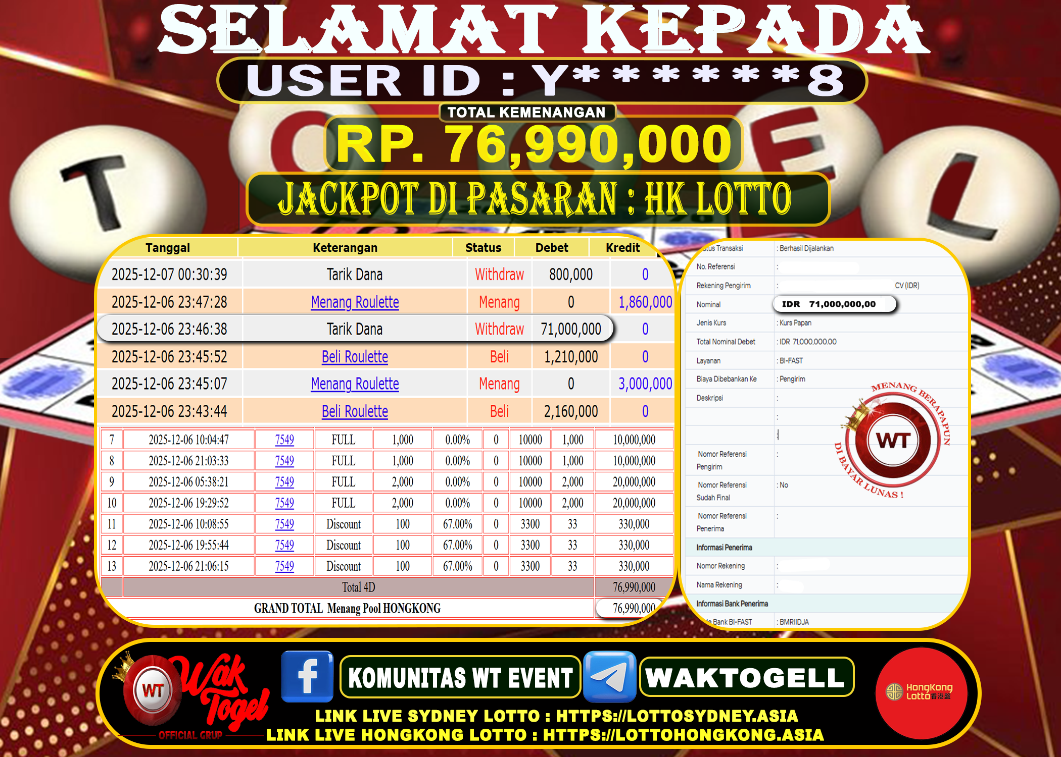 Bukti Pembayaran Jackpot Waktogel Untuk SLOT, TOGEL , LIVECASINO