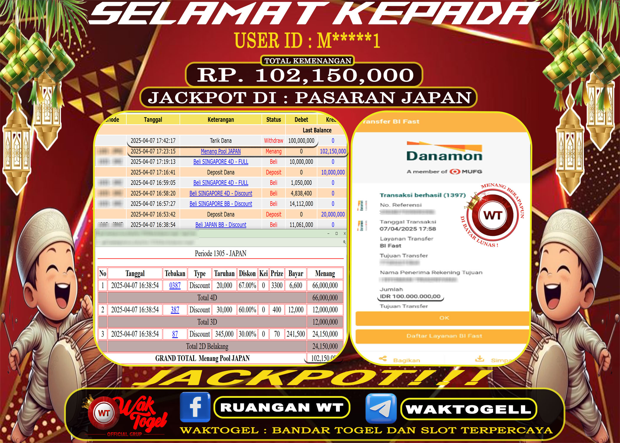 BUKTI PEMBAYARAN JAPAN WAKTOGEL BUKTI PEMBAYARAN JAPAN WAKTOGEL RP. 102,150,000 – GAME : TOGEL JAPAN POOLS (USER ID : M*****1) TANGGAL |07-04-2025| CASH LUNAS ! […]