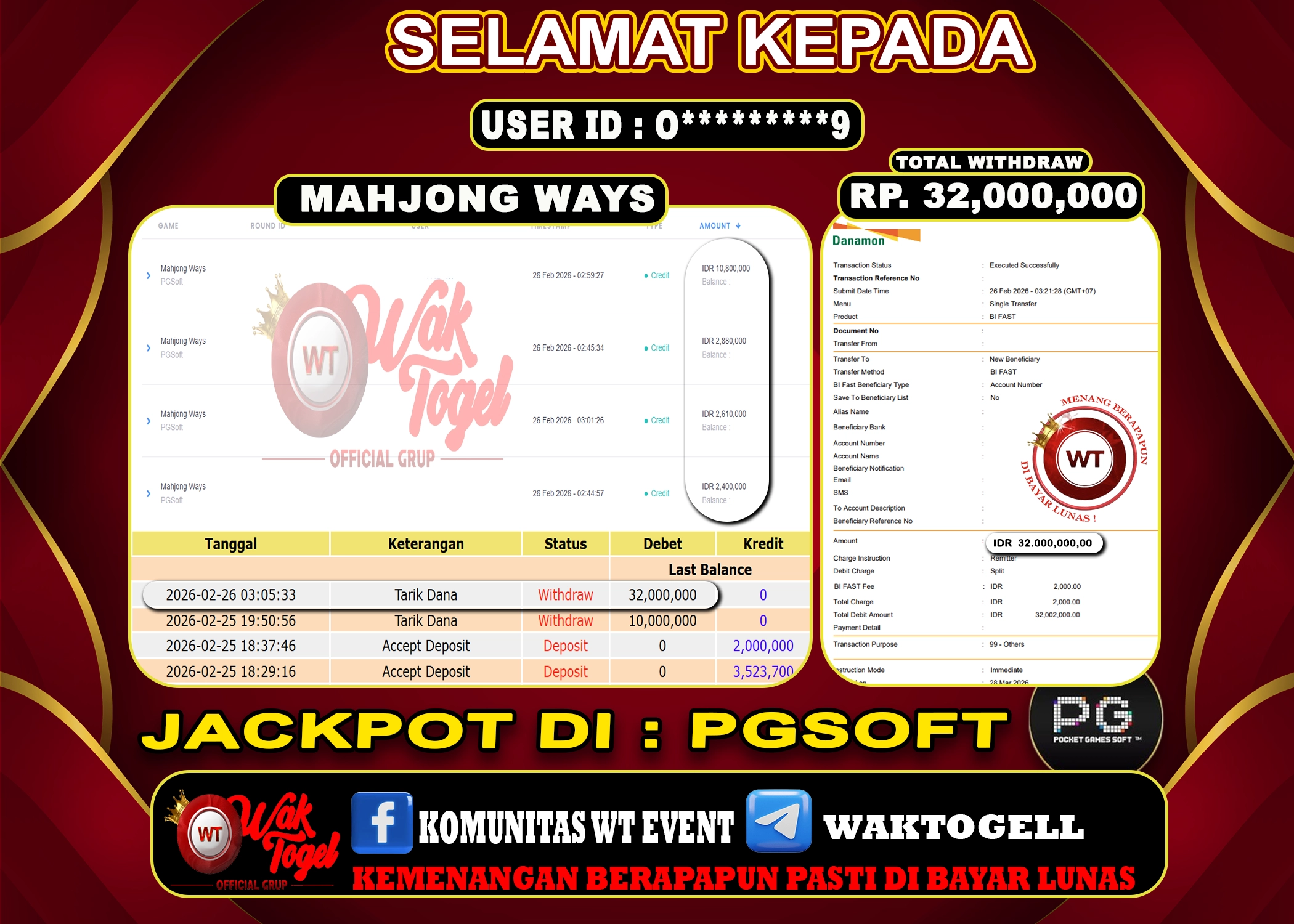 JACKPOT SLOT WAKTOGEL BUKTI PEMBAYARAN SLOT WAKTOGEL By JPWT Februari 26, 2026 0 comments 2 min read BUKTI PEMBAYARAN SLOT WAKTOGEL BUKTI PEMBAYARAN SLOT WAKTOGEL RP. 32,000,000 – GAME : SLOT MAHJONG WAYS (USER ID : O*********9 TANGGAL |26-02-2026| CASH LUNAS ! […]