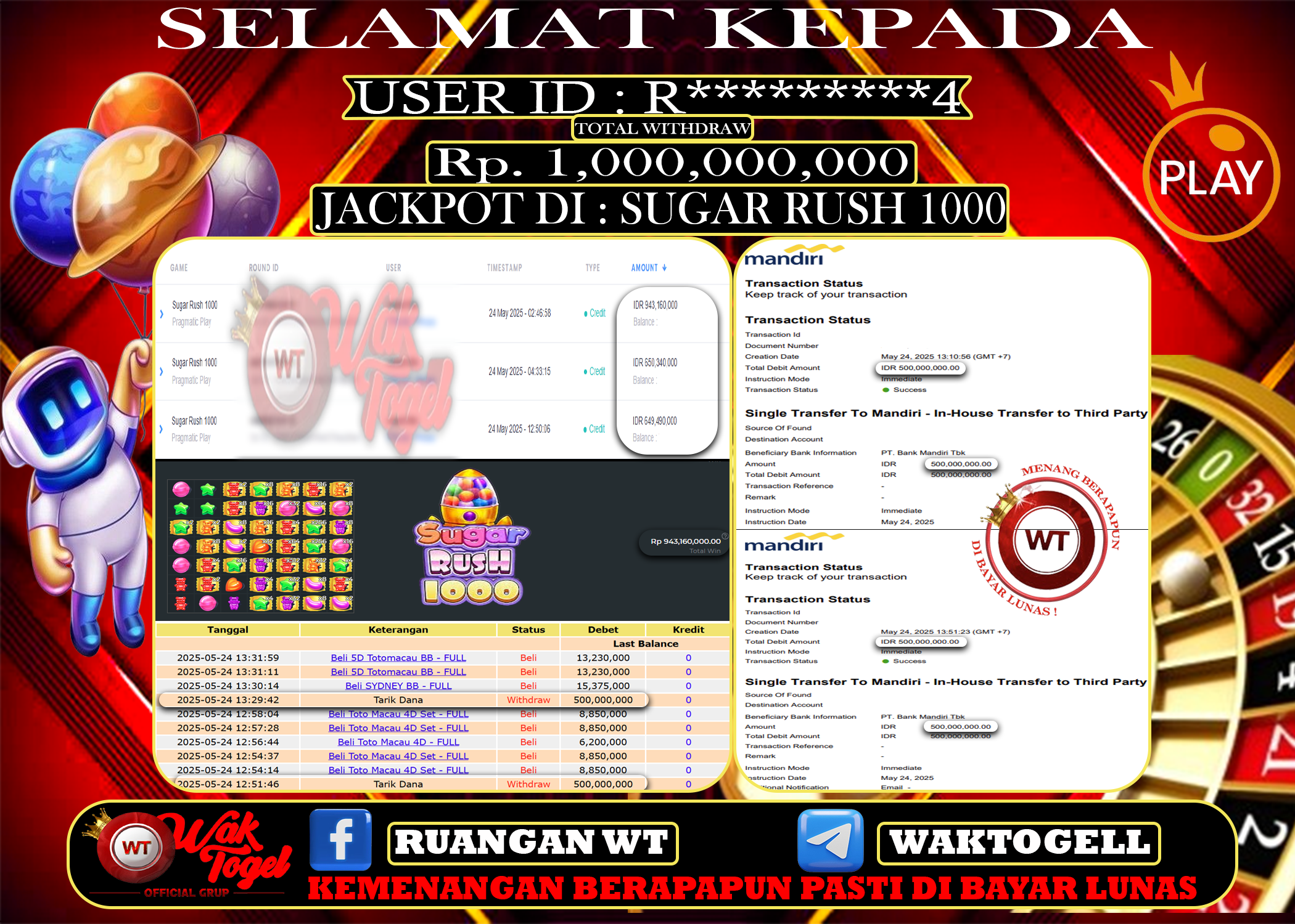 JACKPOT SLOT WAKTOGEL BUKTI PEMBAYARAN SLOT WAKTOGEL By JPWT Juni 13, 2025 0 comments 2 min read BUKTI PEMBAYARAN SLOT WAKTOGEL BUKTI PEMBAYARAN SLOT WAKTOGEL RP. 500,000,000 – GAME : SLOT SUGAR RUSH 1000 (USER ID : R*********4) TANGGAL |13-06-2025| CASH LUNAS […]