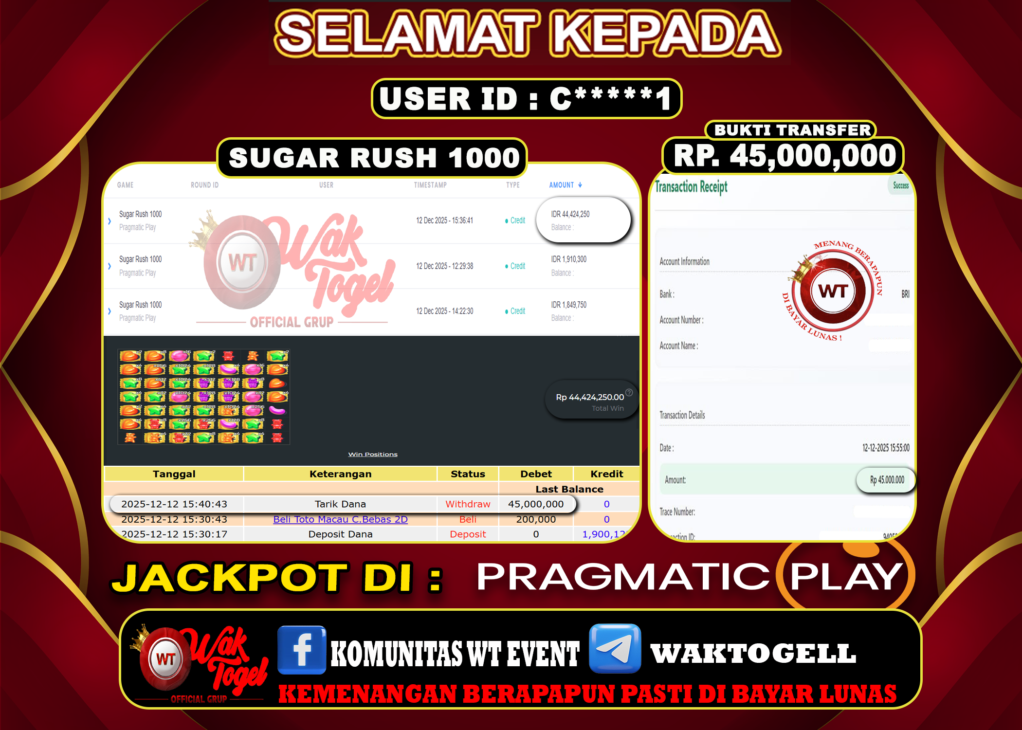 JACKPOT SLOT WAKTOGEL BUKTI PEMBAYARAN SLOT WAKTOGEL By JPWT Desember 12, 2025 0 comments 2 min read BUKTI PEMBAYARAN SLOT WAKTOGEL BUKTI PEMBAYARAN SLOT WAKTOGEL RP. 45,000,000 – GAME : SLOT SUGAR RUSH 1000 (USER ID : C*****1) TANGGAL |12-12-2025| CASH LUNAS […]