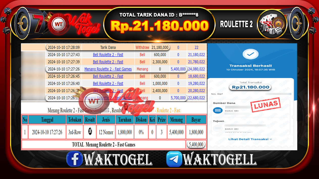 JACKPOT CASINO WAKTOGEL BUKTI PEMBAYARAN ROULETTE 2 – FAST WAKTOGEL By JPWT Oktober 10, 2024 0 comments 3 min read BUKTI PEMBAYARAN ROULETTE 2 – FAST WAKTOGEL BUKTI PEMBAYARAN ROULETTE 2 – FAST WAKTOGEL RP. 21.180.000 – GAME : CASINO ROULETTE 2 – FAST (USER […]