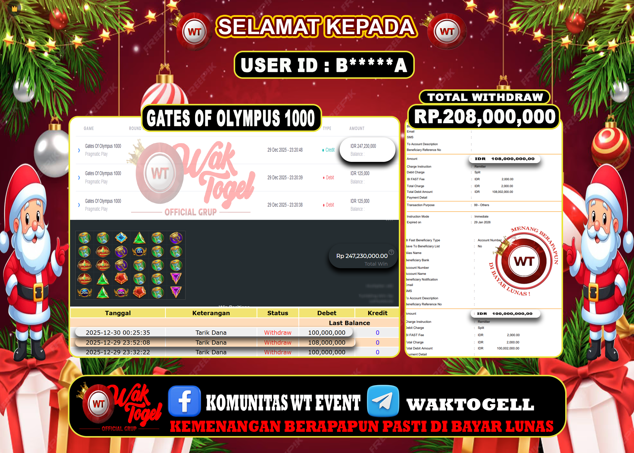 BUKTI PEMBAYARAN SLOT WAKTOGEL BUKTI PEMBAYARAN SLOT WAKTOGEL RP. 208,000,000 – GAME : SLOT GATES OF OLYMPUS 1000 (USER ID : B*****A) TANGGAL |30-12-2025| CASH […]