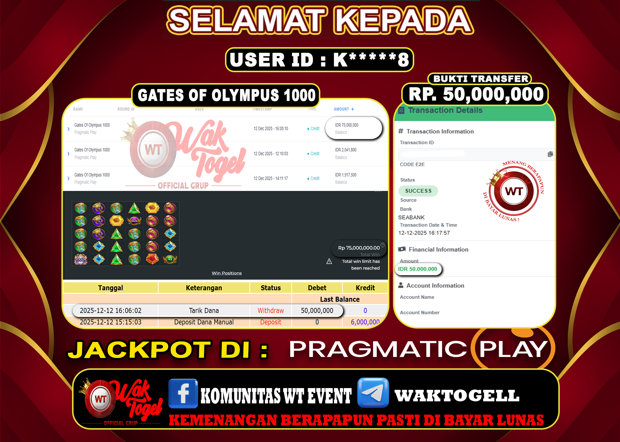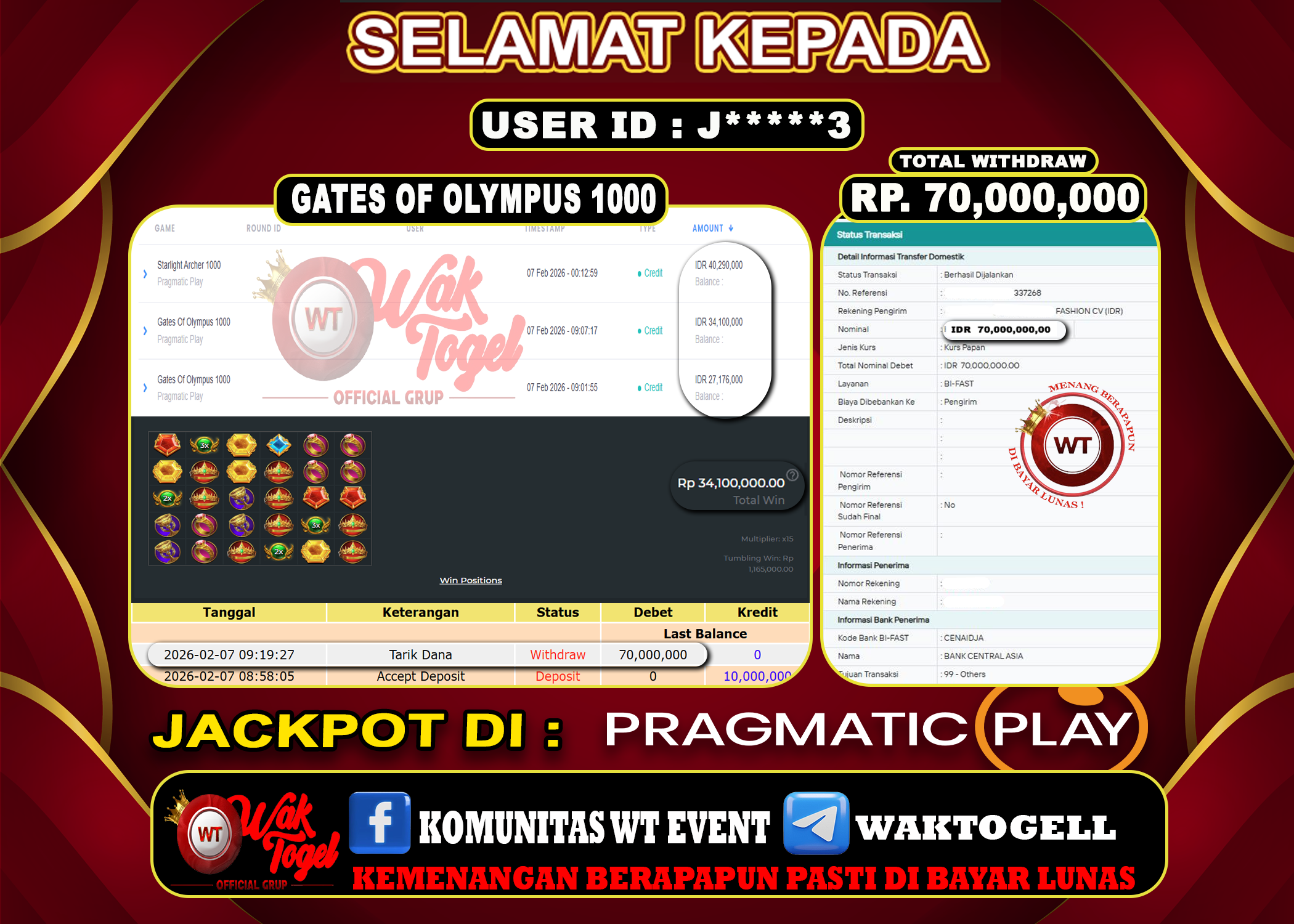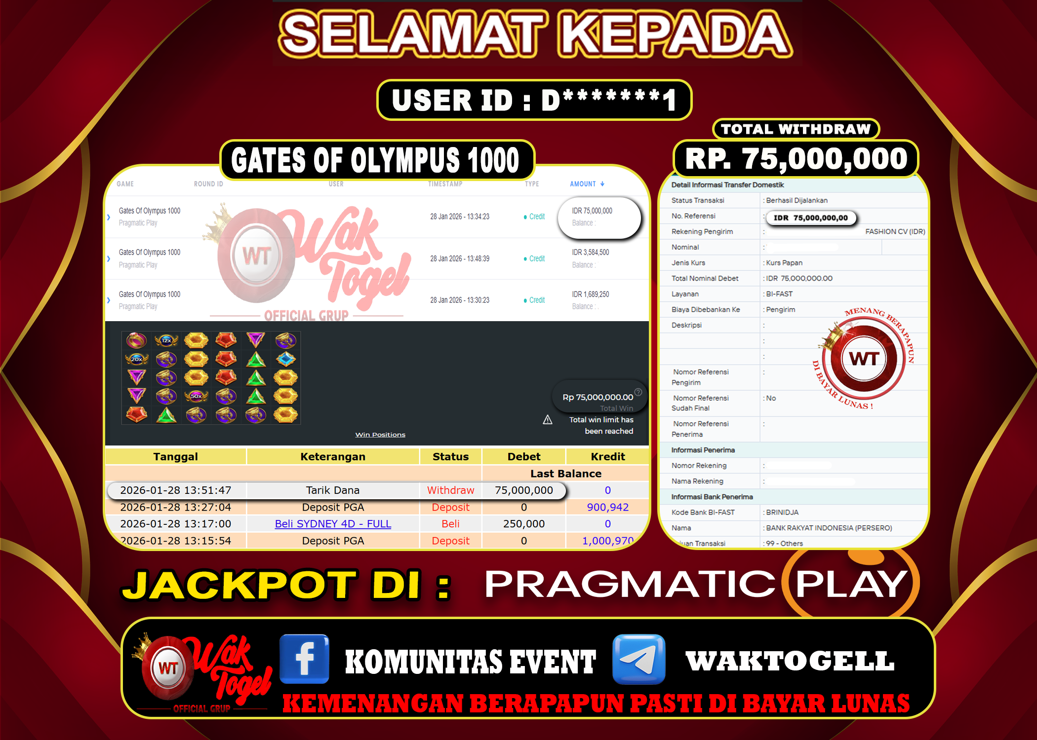 Bukti Pembayaran Jackpot Waktogel Untuk SLOT, TOGEL , LIVECASINO