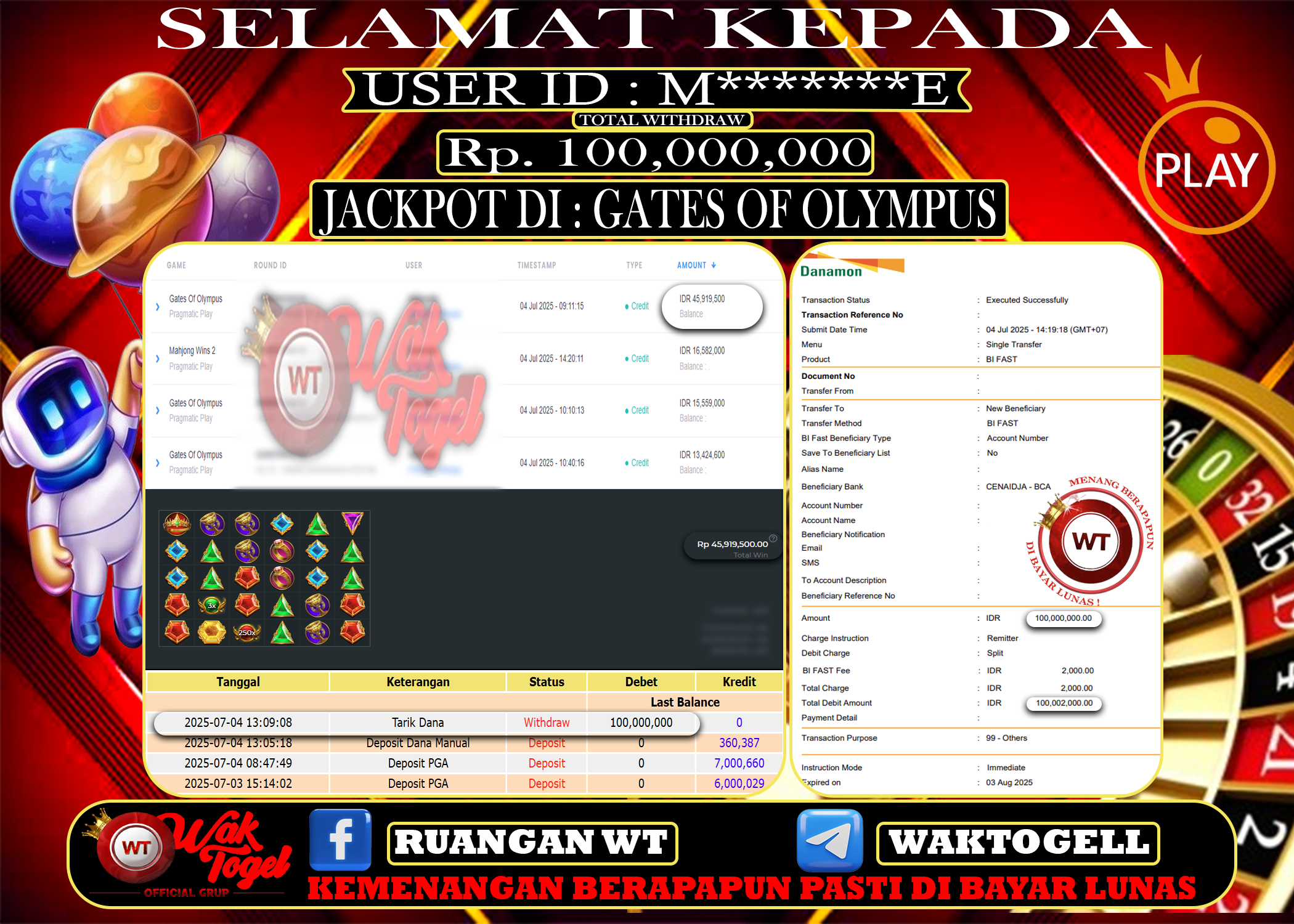 JACKPOT SLOT WAKTOGEL BUKTI PEMBAYARAN SLOT WAKTOGEL By JPWT Juli 4, 2025 0 comments 2 min read BUKTI PEMBAYARAN SLOT WAKTOGEL BUKTI PEMBAYARAN SLOT WAKTOGEL RP. 100,000,000 – GAME : SLOT GATES OF OLYMPUS (USER ID : M*******E) TANGGAL |04-07-2025| CASH LUNAS […]