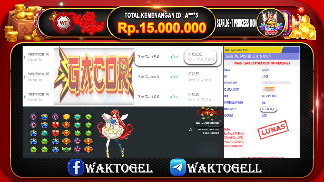 JACKPOT SLOT WAKTOGEL BUKTI PEMBAYARAN SLOT WAKTOGEL By JPWT Oktober 23, 2024 0 comments 2 min read BUKTI PEMBAYARAN SLOT WAKTOGEL BUKTI PEMBAYARAN SLOT WAKTOGEL RP. 15.000.000 – GAME : SLOT STARLIGHT PRINCESS 1000 (USER ID : L******Y) TANGGAL |23-10-2024| CASH LUNAS […]