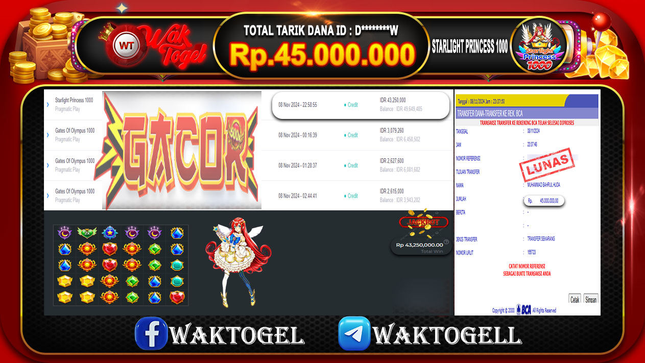 JACKPOT SLOT WAKTOGEL BUKTI PEMBAYARAN SLOT WAKTOGEL By JPWT November 9, 2024 0 comments 2 min read BUKTI PEMBAYARAN SLOT WAKTOGEL BUKTI PEMBAYARAN SLOT WAKTOGEL RP. 45.000.000 – GAME : SLOT STARLIGHT PRINCESS 1000 (USER ID : D********W) TANGGAL |08-11-2024| CASH LUNAS […]