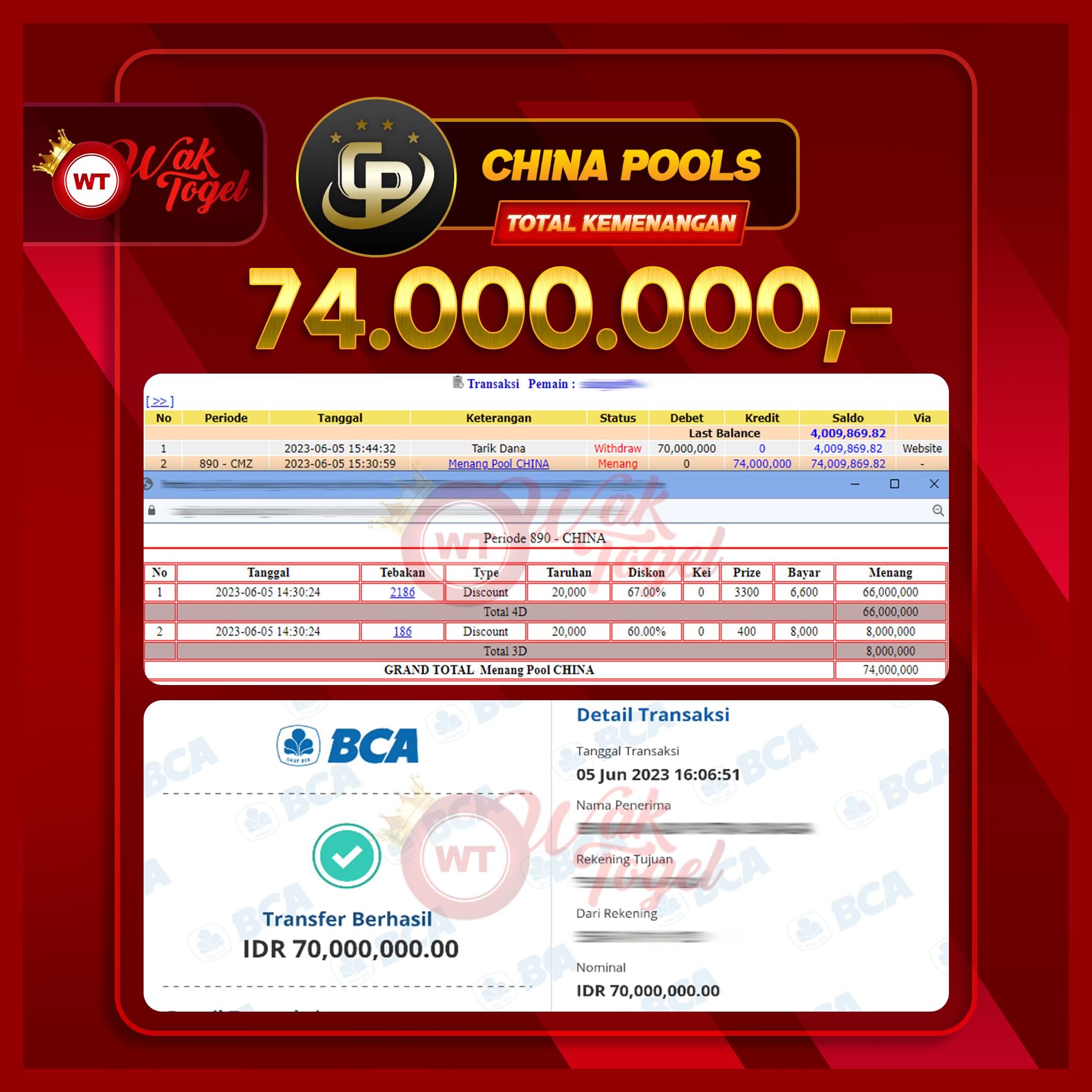 BUKTI PEMBAYARAN CHINA WAKTOGEL BUKTI PEMBAYARAN CHINA WAKTOGEL RP. 74.000.000 – GAME : TOGEL CHINA POOLS TANGGAL (USER ID : S*******9) |06-06-2023| CASH LUNAS ! […]