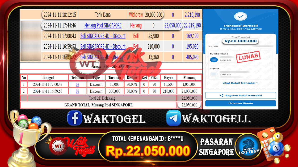 JACKPOT TOGEL WAKTOGEL BUKTI PEMBAYARAN SINGAPORE WAKTOGEL By JPWT November 24, 2024 0 comments 2 min read BUKTI PEMBAYARAN SINGAPORE WAKTOGEL BUKTI PEMBAYARAN SINGAPORE WAKTOGEL RP. 22.000.000 GAME : TOGEL SINGAPORE POOLS (USER ID : W*******1) TANGGAL |24-11-2024| CASH LUNAS ! Kami […]