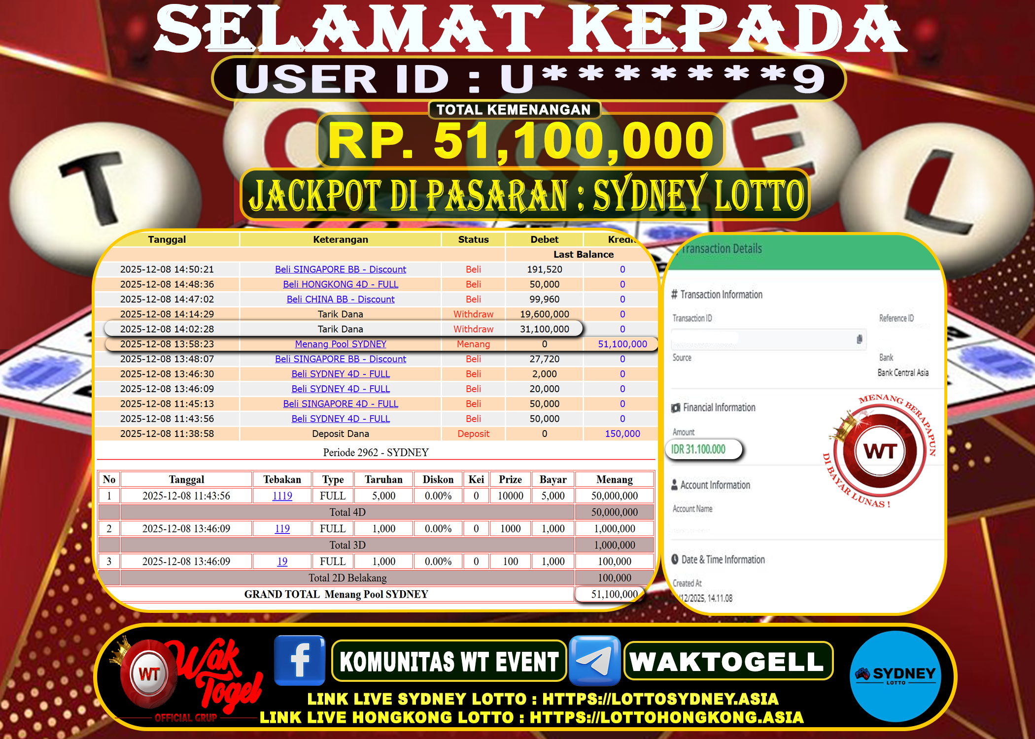 BUKTI PEMBAYARAN SYDNEY WAKTOGEL BUKTI PEMBAYARAN SYDNEY LOTTO WAKTOGEL RP. 51.100.000 – GAME : TOGEL SYDNEY LOTTO POOLS (USER ID : U*******9) TANGGAL |08-12-2025| CASH […]