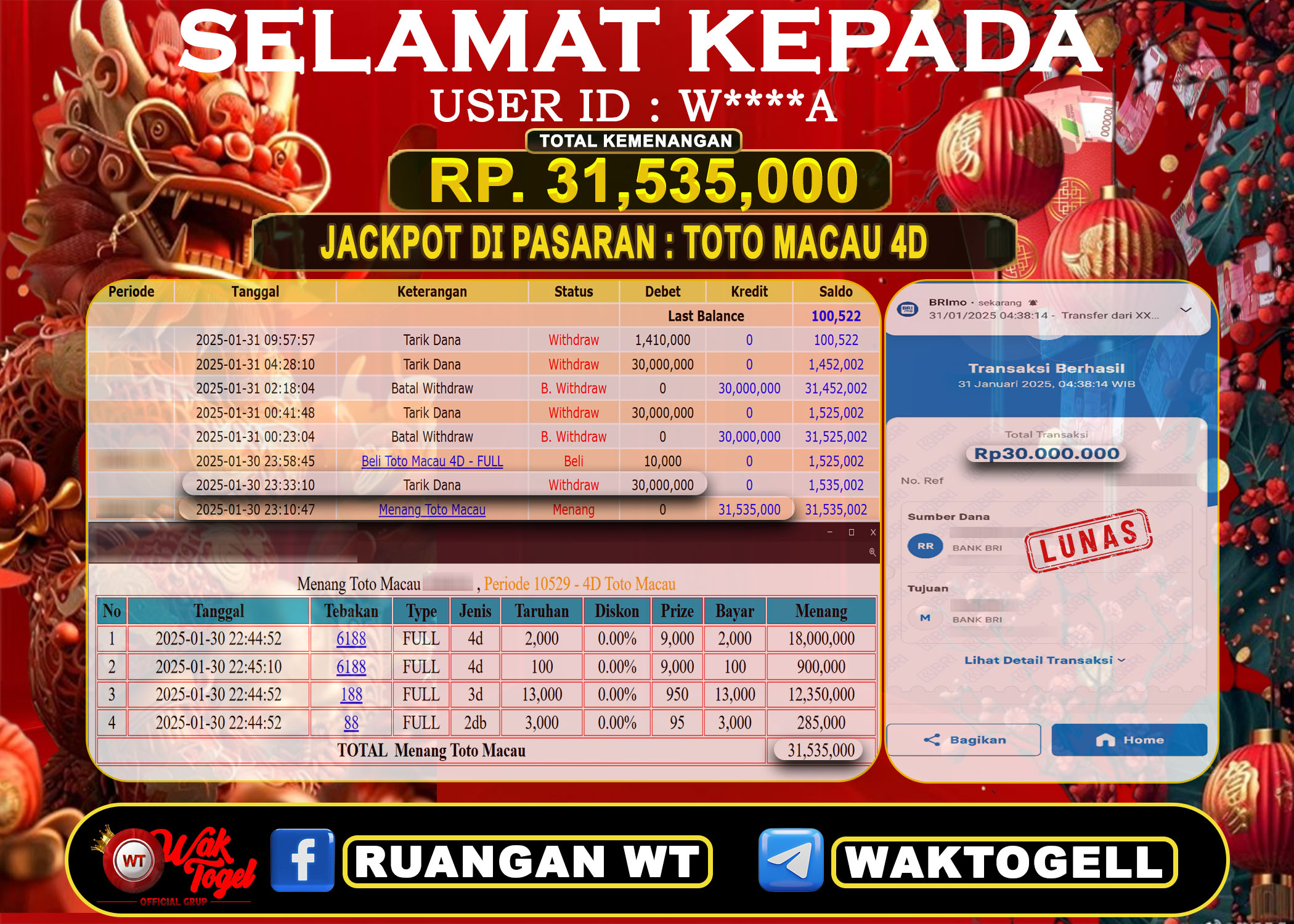 JACKPOT TOGEL WAKTOGEL BUKTI PEMBAYARAN TOTO MACAU 4D WAKTOGEL By JPWT Januari 31, 2025 0 comments 2 min read BUKTI PEMBAYARAN TOTO MACAU 4D WAKTOGEL BUKTI PEMBAYARAN TOTO MACAU 4D WAKTOGEL RP. 31,535,000 – GAME : TOGEL TOTO MACAU 4D (USER ID : W****A) […]