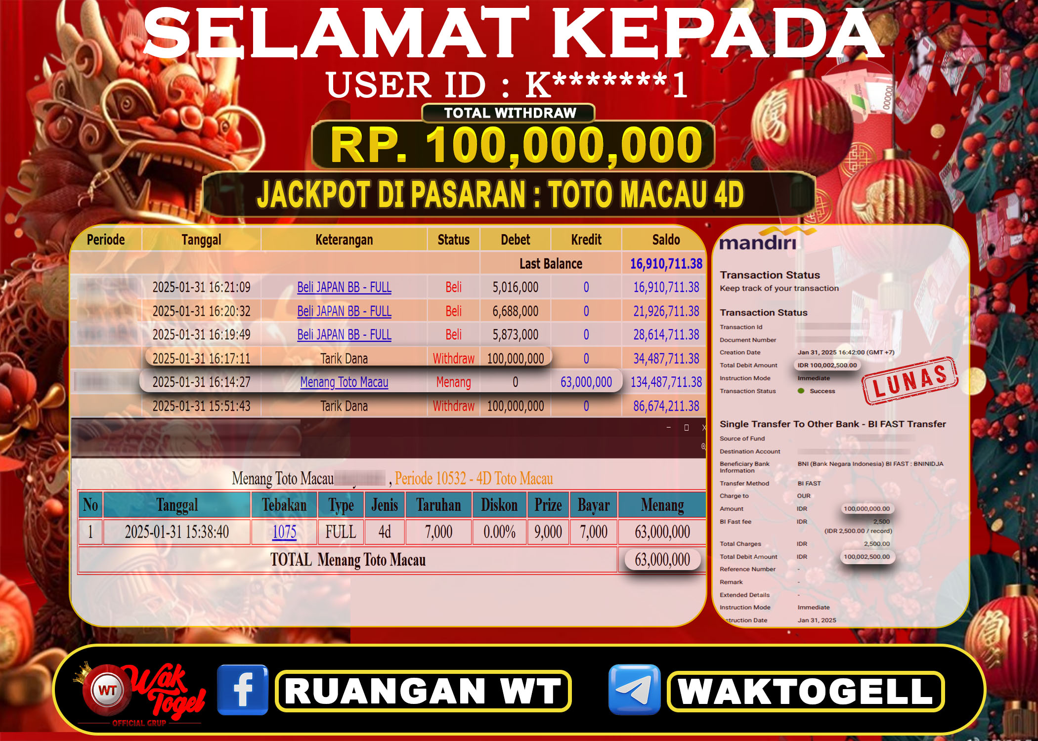 JACKPOT TOGEL WAKTOGEL BUKTI PEMBAYARAN TOTO MACAU 4D WAKTOGEL By JPWT Januari 28, 2025 0 comments 2 min read BUKTI PEMBAYARAN TOTO MACAU 4D WAKTOGEL BUKTI PEMBAYARAN TOTO MACAU 4D WAKTOGEL RP. 100,000,000 – GAME : TOGEL TOTO MACAU 4D (USER ID : K*******1) […]