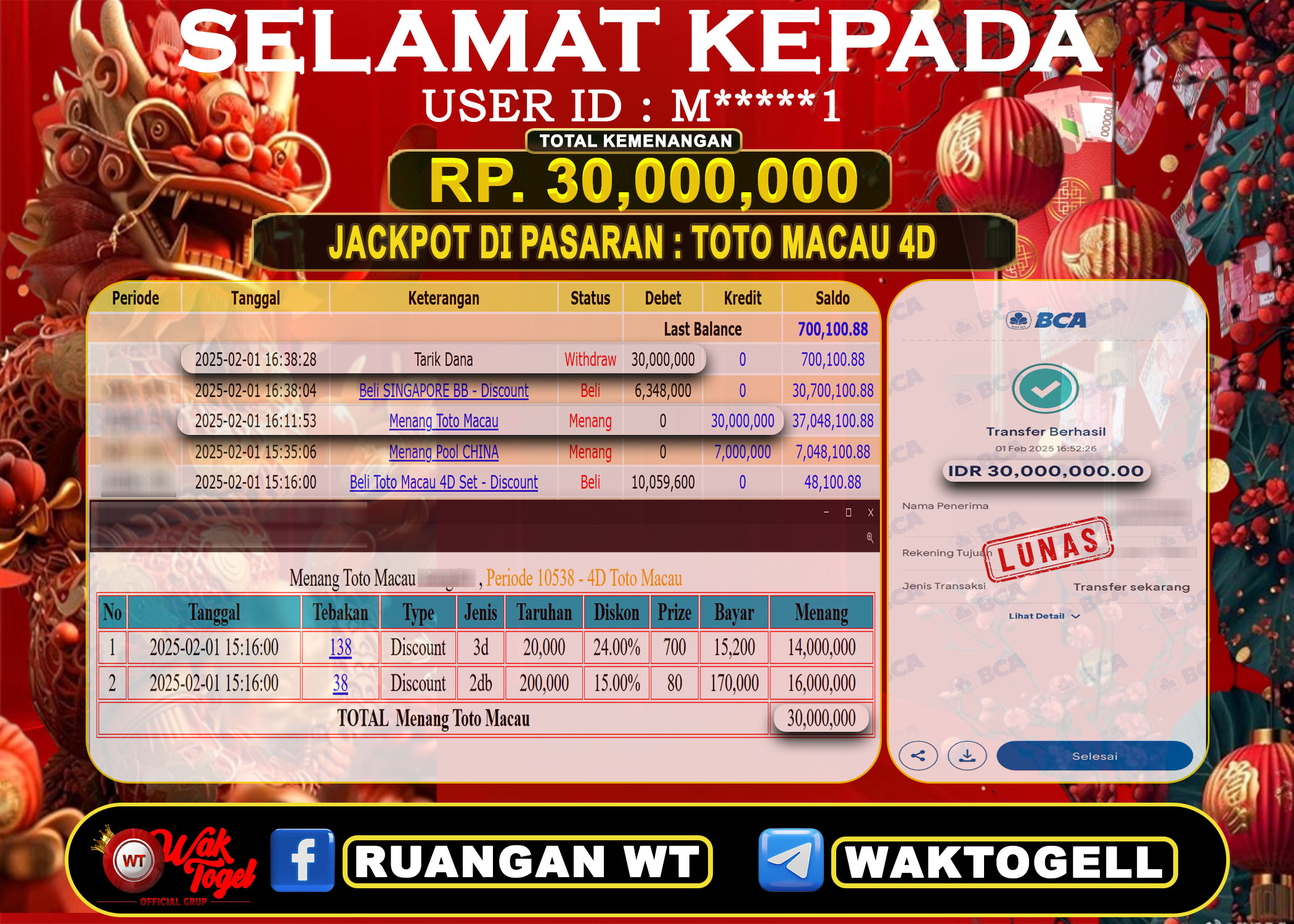 JACKPOT TOGEL WAKTOGEL BUKTI PEMBAYARAN TOTO MACAU 4D WAKTOGEL By JPWT Februari 1, 2025 0 comments 2 min read BUKTI PEMBAYARAN TOTO MACAU 4D WAKTOGEL BUKTI PEMBAYARAN TOTO MACAU 4D WAKTOGEL RP. 30,000,000 – GAME : TOGEL TOTO MACAU 4D (USER ID : M*****1) […]