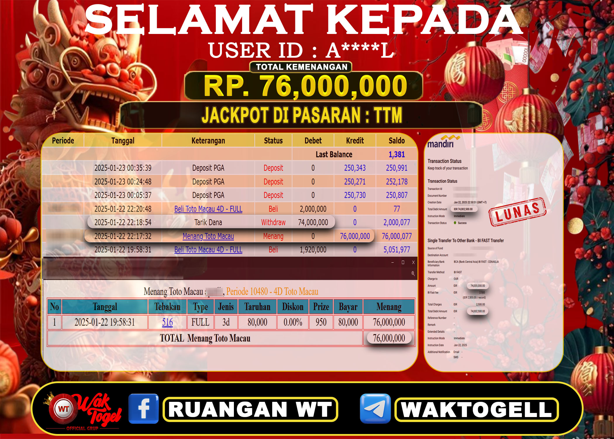JACKPOT TOGEL WAKTOGEL BUKTI PEMBAYARAN TOTO MACAU 4D WAKTOGEL By JPWT Januari 20, 2025 0 comments 2 min read BUKTI PEMBAYARAN TOTO MACAU 4D WAKTOGEL BUKTI PEMBAYARAN TOTO MACAU 4D WAKTOGEL RP. 55,000,000 – GAME : TOGEL TOTO MACAU 4D (USER ID : K*******1) […]