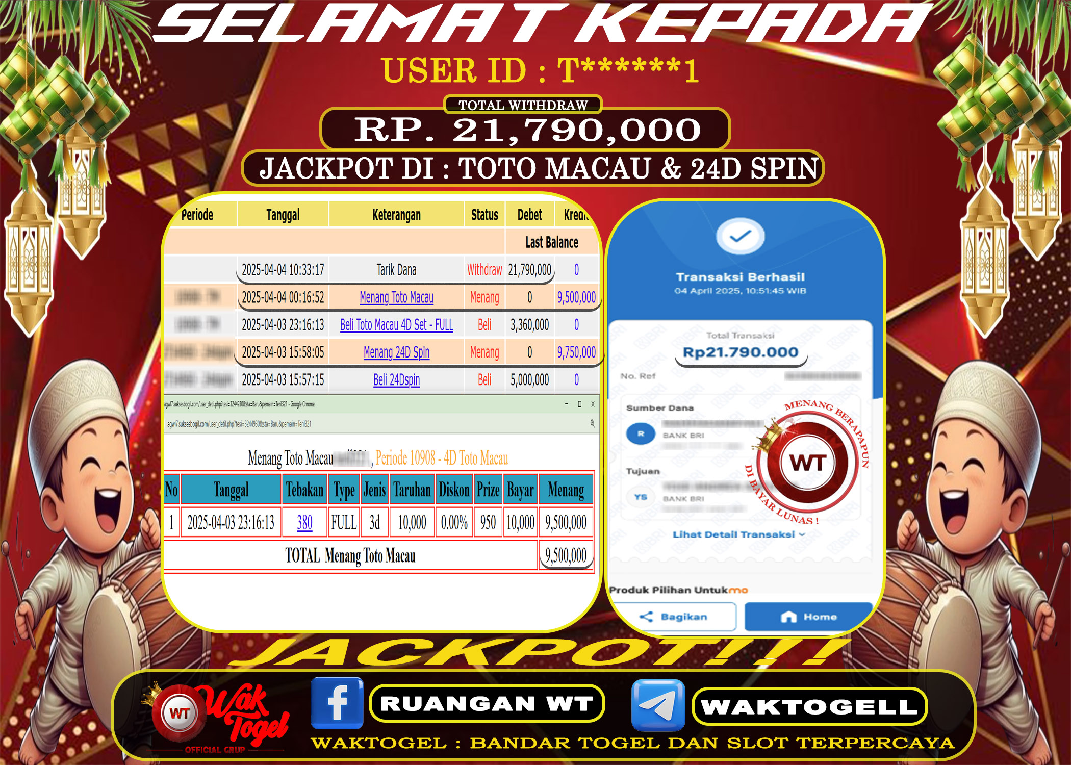 BUKTI PEMBAYARAN TOTO MACAU 4D WAKTOGEL BUKTI PEMBAYARAN TOTO MACAU 4D WAKTOGEL RP. 38,950,000 – GAME : TOGEL TOTO MACAU (USER ID : M******0) TANGGAL […]
